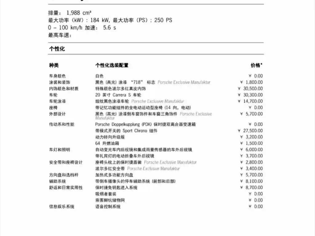Комплектация Cayman 2.0T